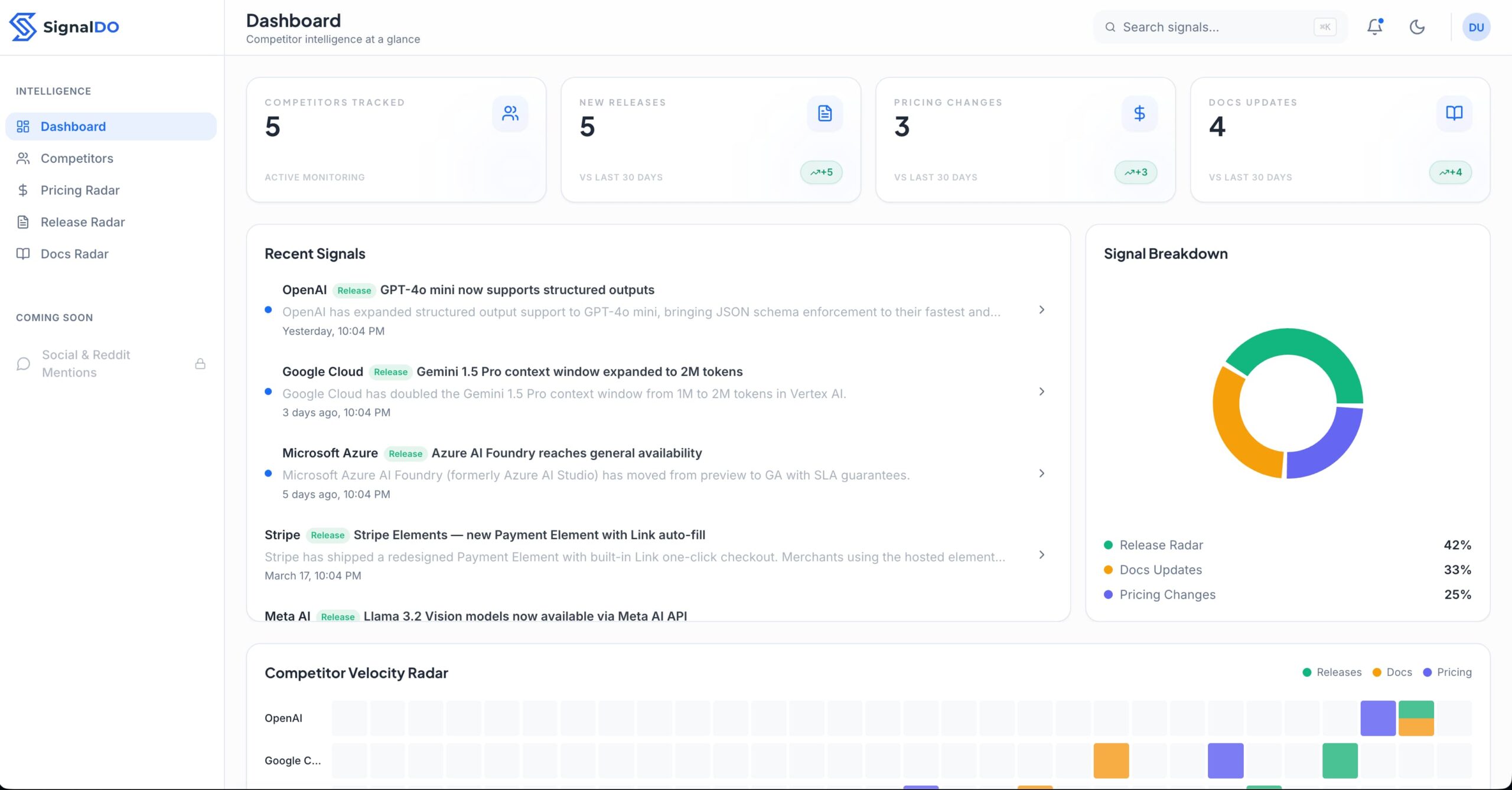 Join data-driven teams using SignalDO to track pricing, docs, and releases in real-time.